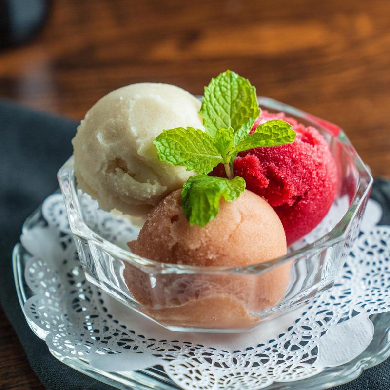 Palate-cleansing delight, perfect for a refreshing finale: frozen treat made with fresh seasonal fruits, juiced and puréed